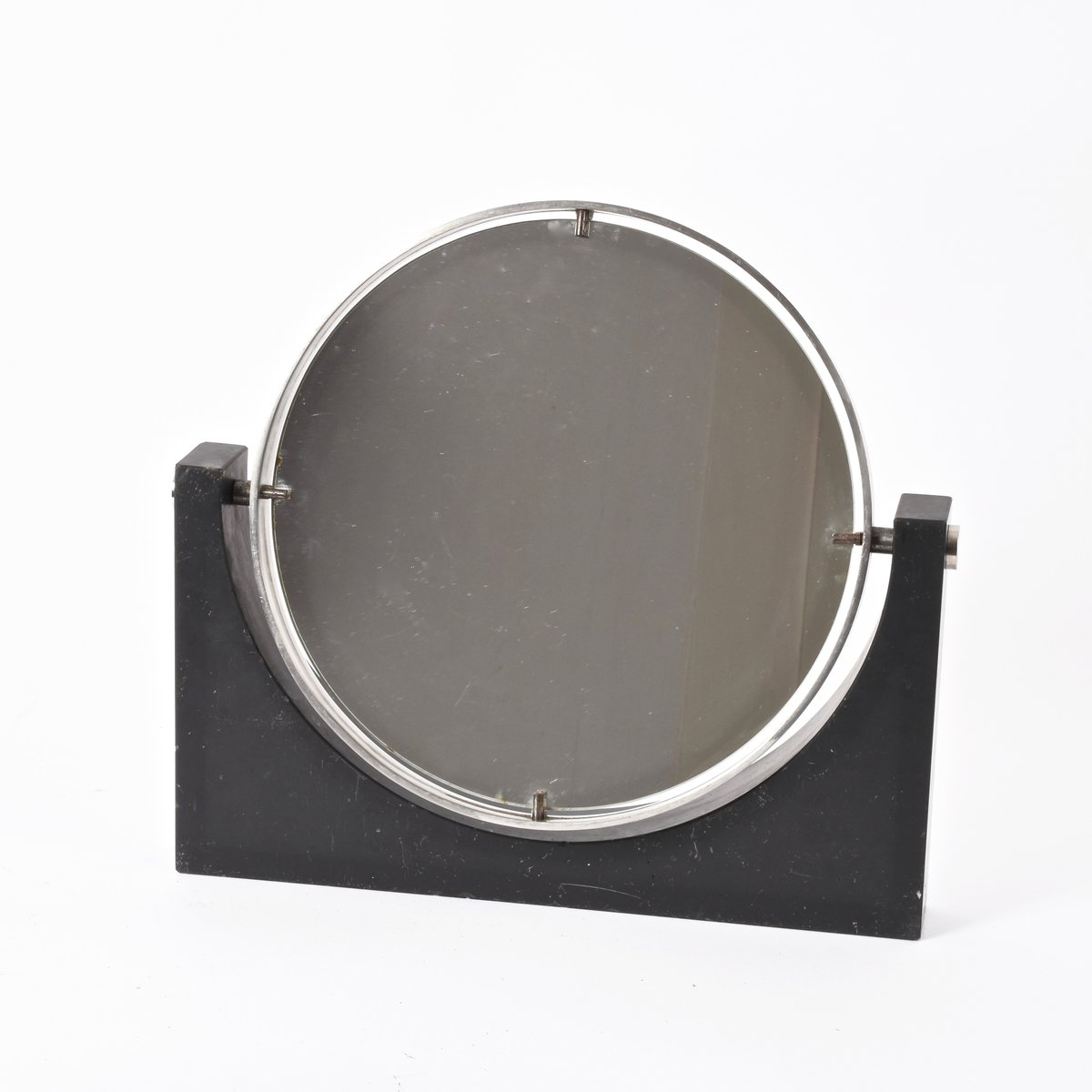 Miroir de Table MidCentury Rond en Marbre Noir & Acier en vente sur Pamono